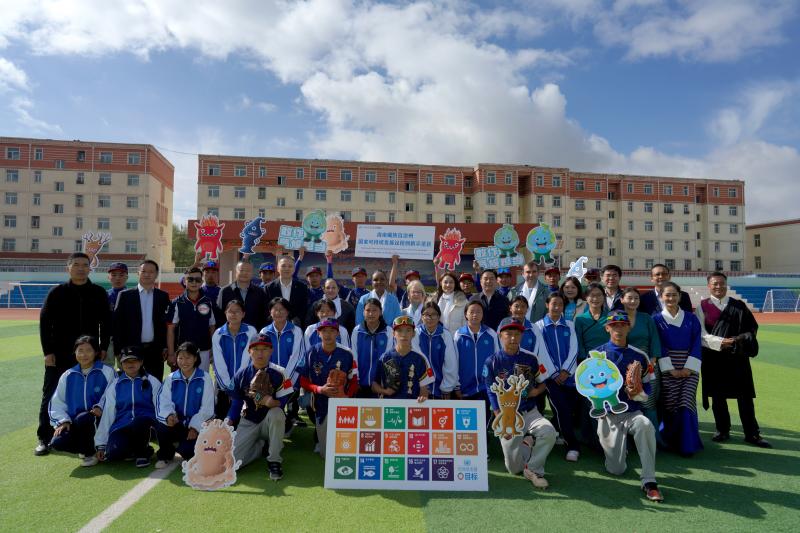 9 月 29 日,在青海省海南藏族自治州,联合国儿童基金会驻华代表桑爱玲、联合国开发计划署驻华代表白雅婷和联合国人口基金驻华代表那迪娅探访了青海省海南藏族自治州的一所学校。