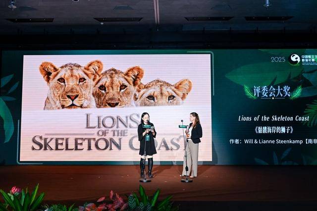 中国摄影师芦林凭借作品《利爪与心跳》获得年度最佳自然摄影师;来自南非的Will & Lianne Steenkamp凭借作品《Lions of the Skeleton Coast》(《骷髅海岸的狮子》)获得评委会大奖;抖音拾光计划与哔哩哔哩纪录片获得年度特别贡献奖。此外,中国野生生物影像年赛在连续举办六年的基础上,升级求新,围绕“未至之境”这一2025年赛年度主题,增设“新发现奖”“珍·古道尔青少年自然影像奖”“视频单元长片组”“摄影单元水下世界组”四个新奖项,秉持科学求真理念,深度拓展自然影像创作维度。