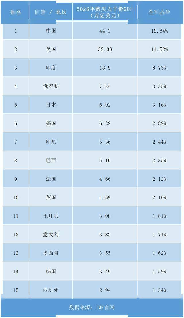 米兰体育- 米兰体育官方网站- APP下载IMF最新预测2026年全球购买力平价GDP中国大幅领先雄踞全球第一