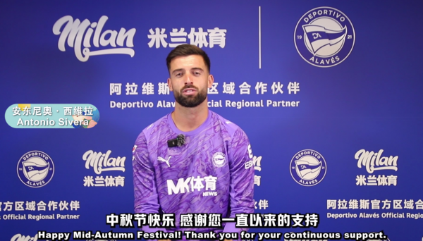 节日视频中,阿拉维斯竞技多位球员依次出镜,以真挚的语言送出节日祝福。边锋卡洛斯比森特率先出场,用流畅中文温柔道出:“祝大家中秋节快乐。”随后,前锋托尼马丁内斯带着笑意说道:“愿您在国庆假期与亲友相聚,度过一个温馨而美好的节日。”压轴出场的门将安东尼奥西维拉则庄重致意:“感谢您一直以来的支持,祝您双节安康,阖家幸福。”三位球员虽远在西班牙,却借由镜头传递出节日的温度与诚意,将祝福送至亚洲每一位球迷心中。