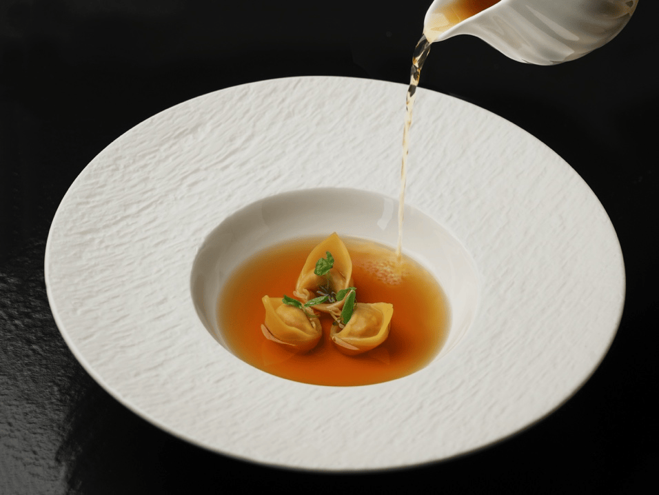 牛肉清汤配意式猪肉饺,清澈如琥珀的汤体,是时光与技艺沉淀的精华,一颗颗饱满的意式猪肉饺,入口是质朴而温暖的家乡风味。这道源自意大利北部的经典菜品,在传统习俗中常在圣诞节和新年食用,让它成为人们对冬季里最隆重的节日的温暖盼望。